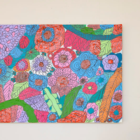 Born in 2001, she mainly draws colorful flowers. Each piece has a cheerful and lively expression, as if expressing her inner self. She majored in photography at a vocational school. It will be interesting to see how she will express the world seen through the camera lens in her future works.