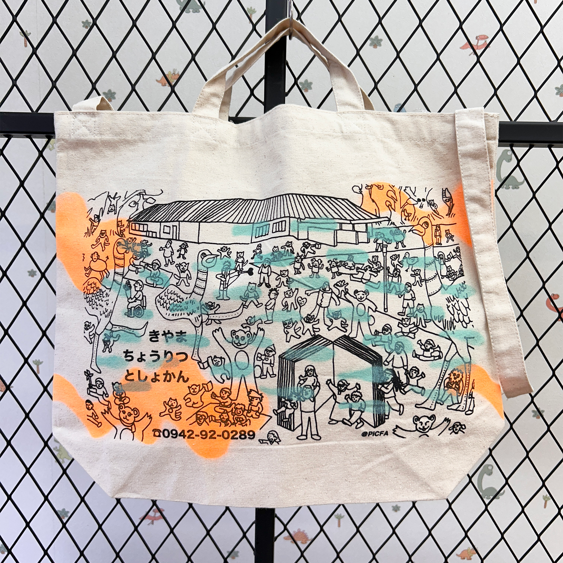 人気の図書館バッグにステンシルが施された限定BAG+アクリルキーホルダー+一筆箋+ポストカード5枚(ランダムでのお届けとなります。写真は参考商品です。)